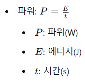 • 파워(Power): 에너지 사용 속도, 단위는 와트(W).