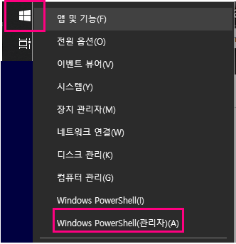 - 'Windows PowerShell(관리자)(A)'를 누른다.